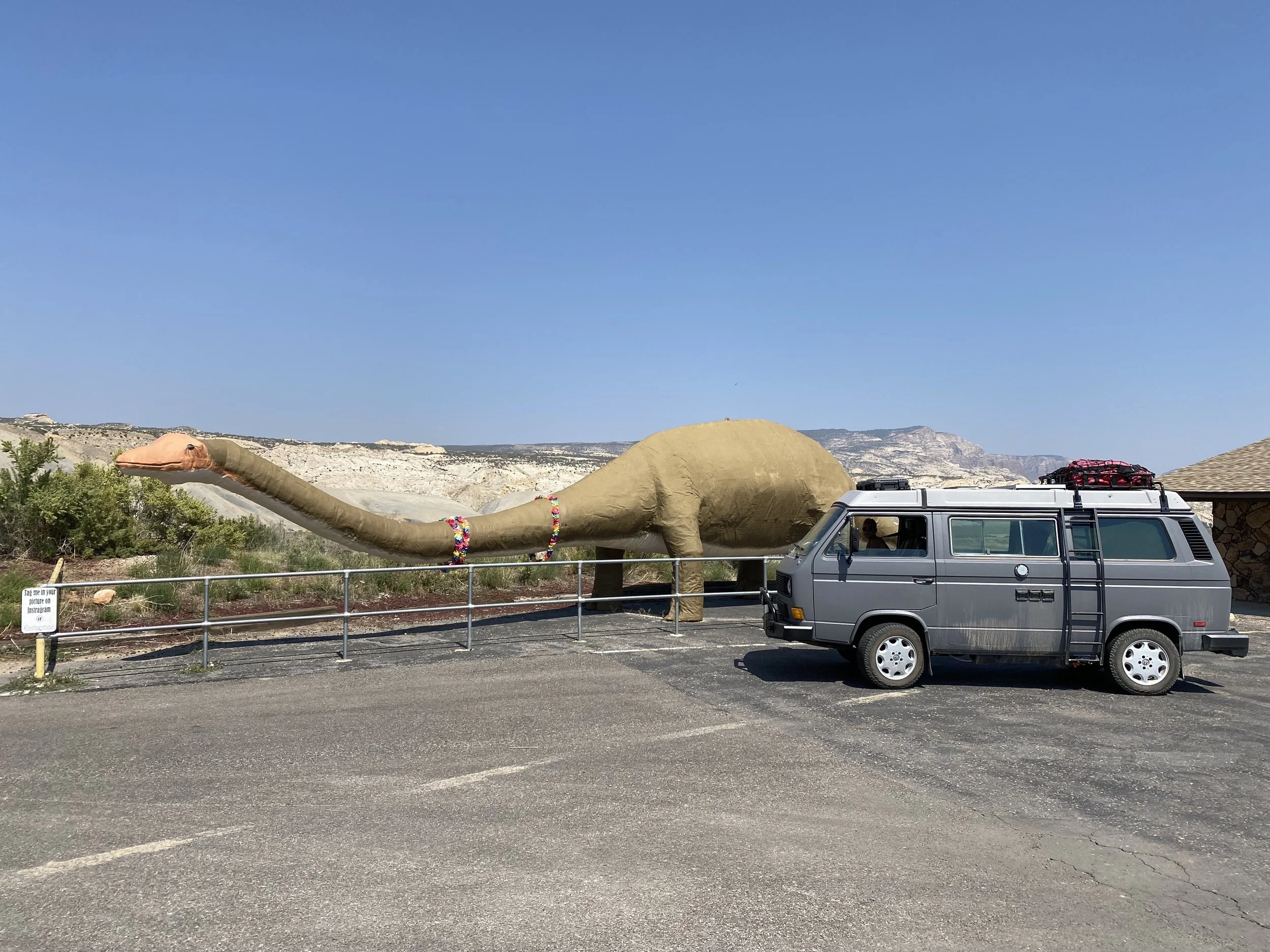 We drove east for a couple more hours with our sights set on northern Colorado. Just before the state line, we saw signs for the quarry at Dinosaur National Monument near Jensen, Utah. We figured we should pay a visit. We had nothing in particular left on our itinerary, and, plus, who knows when our next adventure to this area would be.
